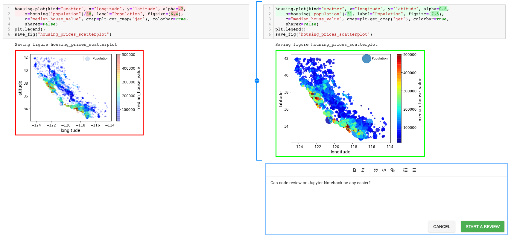 Code can be cleanly prepared into “commits” so reviewers can just compare two points in time; but for data it’s more valuable to be able to look at it over many points in time, such as to see trends. This is a tricky, somewhat meta problem, but I think it’s pretty interesting.
